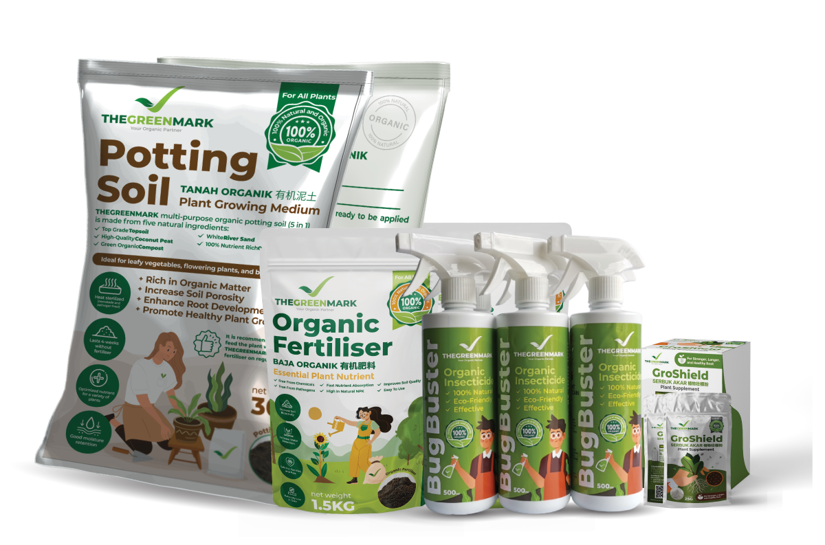 TheGreenMark is a local brand with a range of products such as organic fertilizer, potting soil, bio-fungicide (plant supplements), and bio-pesticide (insect repellent). Our products are the result of ten years of research and development in Singapore and Malaysia.